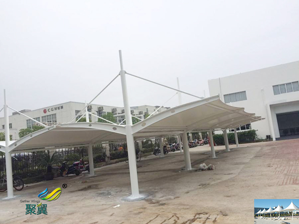 3、膜結(jié)構(gòu)車棚材料組成:鋼結(jié)構(gòu)+膜材料+附件等。