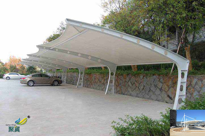 1、造型優(yōu)美。膜結(jié)構(gòu)車棚采用質(zhì)軟已于造型的膜材料為主材,可設(shè)計成多種造型