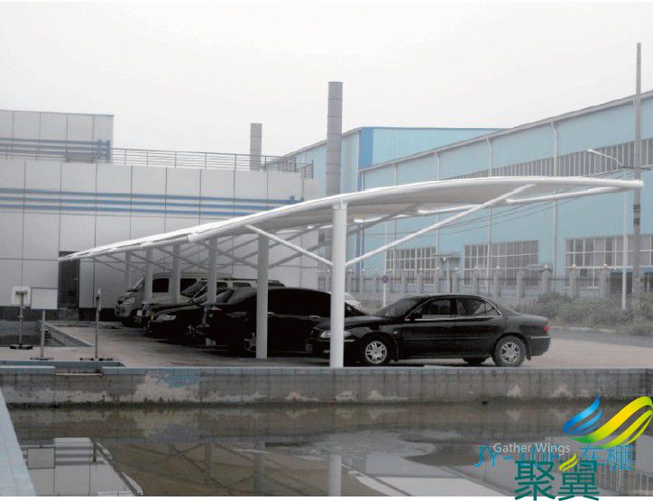 膜結構車蓬使用壽命及特點:膜結構車棚的篷布材質(zhì)是膜材,而膜材的最大特點是強度高、耐久性好、防火難燃、自潔性好,不受紫外線影響,使用壽命長,一般15-30年。具有高透光率,透光率為13%,對熱能反射率73%,熱吸收量很少。
