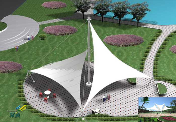 詳細>>深圳膜結(jié)構(gòu)室內(nèi)張拉膜傘、景觀小品材料施工安裝效果圖