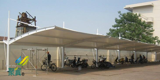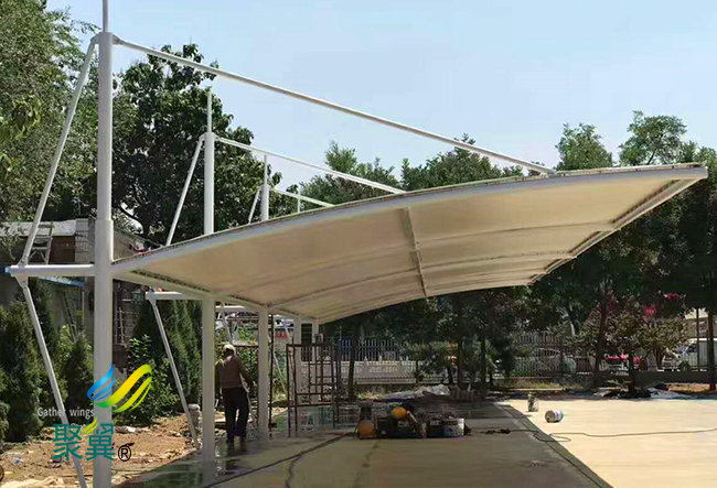 在選擇膜結構車棚材料的時候肯定要細致,材料直接影響車棚的使用結果和汽車棚的使用壽命。首先是保證膜結構車棚材料的耐用性,如許能夠更好地珍愛車棚里的車子的安全,分外是南方地區(qū)雨水比較多,而且經(jīng)常有暴風雨,所以肯定要選擇抗風雨好的材料建設,以免碰到惡劣氣候受到損壞。