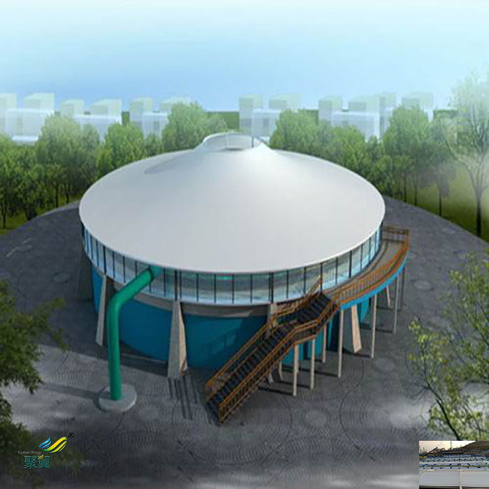 2.污水池反吊膜景觀價值高。膜結(jié)構(gòu)可以隨意變換曲線,其美感是其他建筑無法相提并論的。只要設(shè)計師感想象,就可以設(shè)計出完美氣膜建筑,觀賞價值極高。