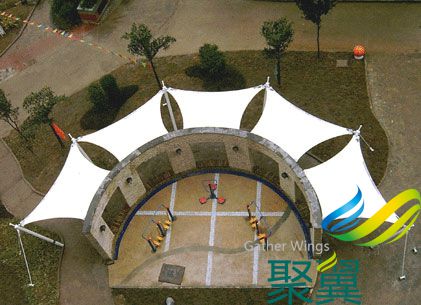 • 張拉膜結(jié)構(gòu)簡(jiǎn)易時(shí)尚款采用德國(guó)進(jìn)口米樂(lè)膜材張力強(qiáng)自潔性