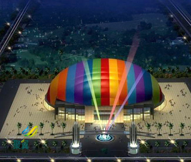 氣膜工程經(jīng)濟(jì)性:由于是膜材的 是具有一定的透光率的,白天的是可減少照明強(qiáng)度的和時(shí)間的,是能很好的地是節(jié)約的能源的。同時(shí)的夜間彩燈透射形成的絢爛景觀也能達(dá)到很好的廣告宣傳效益。