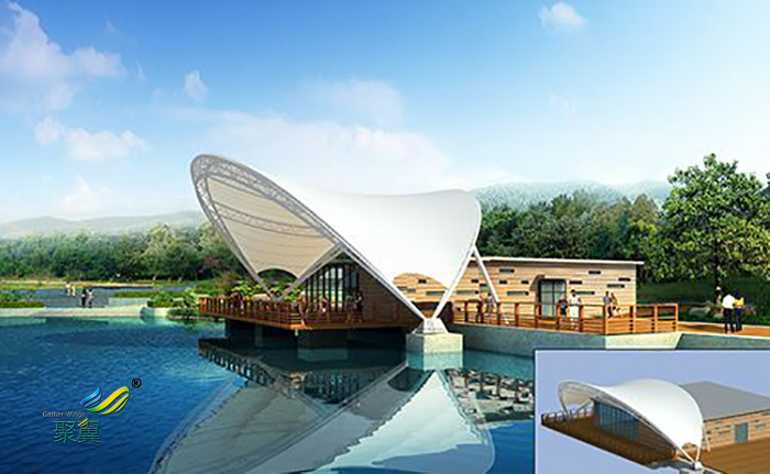 三、舞臺(tái)膜結(jié)構(gòu)景觀(guān)效應(yīng)性:文藝舞臺(tái)膜結(jié)構(gòu)新穎別致的膜建筑造型與傳統(tǒng)建筑相比可以突出其獨(dú)特性,而且也不會(huì)與周?chē)h(huán)境顯得突兀,整體造型適時(shí)適地融合周邊景致,與周?chē)h(huán)境相適應(yīng),相得益彰。特別是結(jié)合夜間的燈光設(shè)計(jì),會(huì)呈現(xiàn)出一個(gè)如夢(mèng)境般的風(fēng)景線(xiàn)。