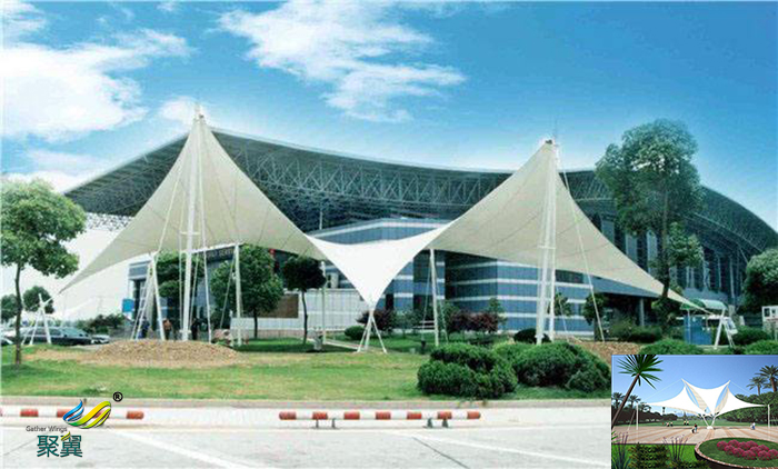 一、具有藝術(shù)性,除了一般的雨篷具有不可比擬的使用價(jià)值,且比較耐用,具有遮風(fēng)擋雨的效果,不僅如此,還具有給人美觀的享受。張拉膜膜結(jié)構(gòu)本身柔美曲線的效果,且可以剛?cè)岵?jì),造型豐富,使用的時(shí)候十分便利。