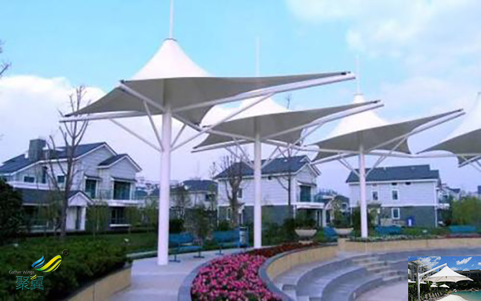 • 山東膜結構張拉膜傘停車棚雨棚、景觀小品設計工程