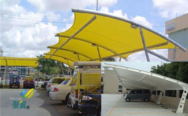 膜結構車棚有很多種,材料的不同,外形的不聽所以命名也就不懂,伸縮遮陽蓬是指外形。膜結構車棚作用很多,比如可以雨天避免雨淋,自動清洗(下雨時上下車避免雨淋,防止?jié)駳膺M入車內,同時具有自動清洗表面灰塵的能);切斷紫外線(歐洲進口PTFE膜結構車棚膜具有切斷紫外線的功能,防止汽車表面涂層在紫外線的照射下迅速惡化)。