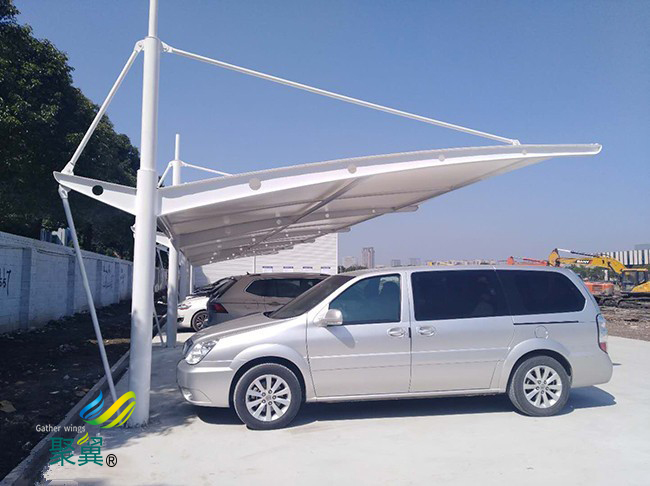 膜結(jié)構(gòu)車棚膜片,膜材裁剪后形成的單元。膜結(jié)構(gòu)車棚預(yù)張力,以機(jī)械或其他方法,預(yù)先施加于拉索或膜片上的力。