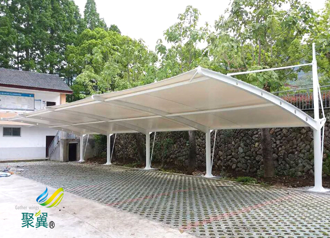 膜結(jié)構(gòu)車(chē)棚自身分量十分輕盈,可隨意變形且接受大的沖擊力,而類似金屬等車(chē)棚就不能隨意的變形伸展,正因如此膜構(gòu)造的膜結(jié)構(gòu)車(chē)棚使用的壽命會(huì)更長(zhǎng), 因此被稱為“不破玻璃”。