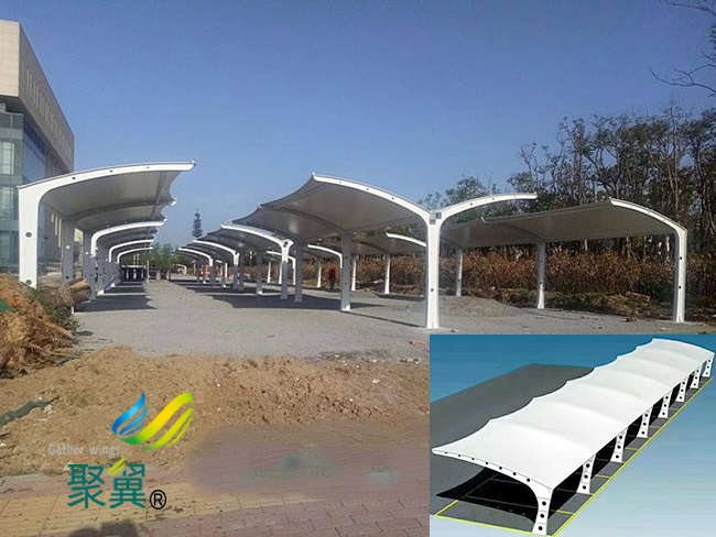 膜結構車棚工期短:膜材裁剪。拼合成型及骨架的鋼結構、鋼索均在工廠加工制作,現場只需組裝,膜結構車棚施工簡便,故施工周期比傳統(tǒng)建筑短。