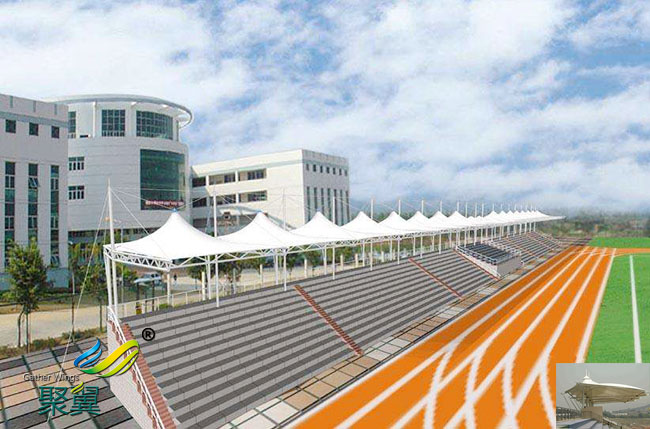膜結構看臺可使建筑師設計出各種張力自平衡、復雜且生動的空間形式。在一天內隨著光線的變化,雕塑般的膜結構通過光與影而呈現(xiàn)出不同的形態(tài)。