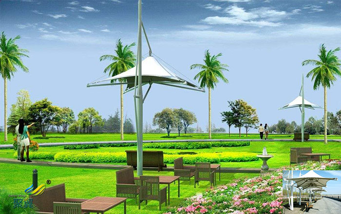 上海園林景觀膜結(jié)構(gòu)廳采用防腐、防嗮、防污染的環(huán)保材料膜結(jié)構(gòu)膜材,既美化景觀,又保護了生態(tài)環(huán)境。