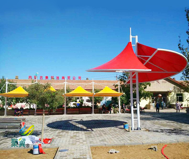 膜結(jié)構(gòu)膜傘的結(jié)構(gòu)形式是很簡(jiǎn)潔的,設(shè)計(jì)也是很專(zhuān)業(yè)的,整個(gè)工藝流程也會(huì)很完善,這樣它在制作的過(guò)程中時(shí)間就會(huì)大大縮短,膜結(jié)構(gòu)膜傘所采用的是可以調(diào)節(jié)和裝卸的節(jié)點(diǎn)形式。