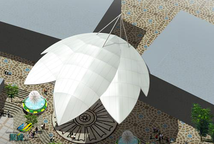 膜結(jié)構(gòu)景觀建筑具有高透光率,透光率為13%,對(duì)熱能反射率73%,熱吸收量很少。近年來膜結(jié)構(gòu)景觀建筑因其使用安全等優(yōu)點(diǎn),因而使膜結(jié)構(gòu)景觀建筑在世界各地受到廣泛應(yīng)用。