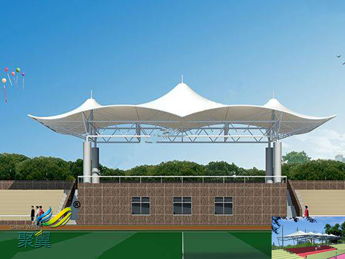 膜結(jié)構(gòu)看臺是膜結(jié)構(gòu)材料近年來應(yīng)用的一個新領(lǐng)域,膜結(jié)構(gòu)建筑能很好的籠罩全部的看臺,膜結(jié)構(gòu)的張拉樣式使得建筑的空間跨度變的更大,同時能縮小建筑的結(jié)構(gòu),建筑的整體重量減輕,這樣施工就會變的簡單安全。這些都是膜結(jié)構(gòu)被廣大用戶選擇的關(guān)鍵因素。膜材的表面都有一種涂層,涂層是為了預(yù)防灰塵雨水的影響,起到保護(hù)膜結(jié)構(gòu)使用年限的作用。