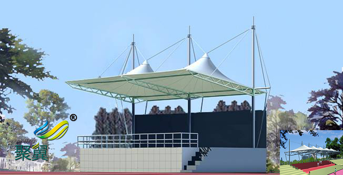 為了解決鋼構配合鋁塑板的弊病,膜結(jié)構慢慢進入了看臺市場,相比傳統(tǒng)的建筑形式膜結(jié)構體育看臺的優(yōu)點很多:首先它不僅滿足了造型的多樣性、夸張性,而且也完美的解決了對于大跨度結(jié)構用鋼量大的問題,往往對于大跨度的結(jié)構來說,起跨度尺寸就代表著需要大量的鋼結(jié)構來補足,然而對于膜結(jié)構來說,其特有的延展性和超高的的抗拉強度完美的解決了大跨度帶來的困擾,大大的節(jié)約了施工成本。