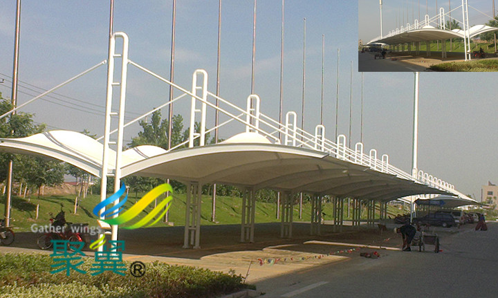 膜結構汽車停車棚膜材料的利用率,生產工作等等。都必須符合計算模型。場拼接縫處理不容易泄漏,所以一般在現場的脊關節(jié)更合適。另一個是在膜結構汽車停車棚工程使用一段時間后,有專業(yè)人員維護工作、所以可以大大延長膜結構的使用壽命。