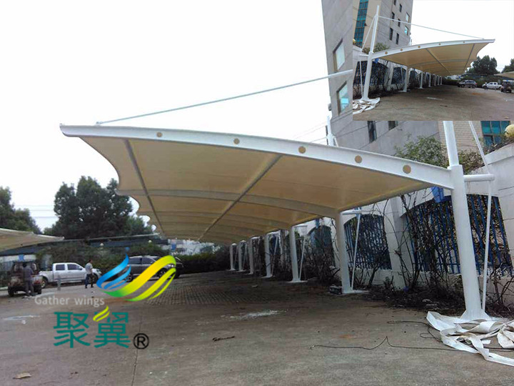 我們可以通過(guò)更換韌性和光潔度更高的 張拉膜膜結(jié)構(gòu)停車棚膜布材料,來(lái)降低受到大風(fēng)和大雨的阻力,變相的來(lái)增加 張拉膜膜結(jié)構(gòu)停車棚的張力,從而增加牢固度。