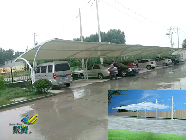 膜結構車棚作為只能抗拉的軟殼體是不適宜采用這種平面單元的因為對于剛性殼體來說,從分析中可以看出。這種平板單元可以看成平面應力單元和平板彎曲單元的組合,其單元剛陣可以由這兩種單元剛陣合并而成。