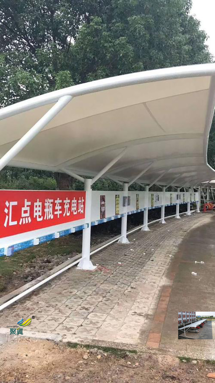 第五、膜結構車棚便于進行移動或者搬遷改造。它自身的質(zhì)量輕,而且可以進行拆卸,適合于各類臨時場所的搭建,我們的車棚可以方便的進行移動。同時,使用時間較長后,還可以對膜結構進行改造翻新,讓車棚能夠保持一個好的形象。使用方便且使用壽命長也是膜結構車棚的優(yōu)勢之一。