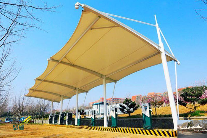 詳細(xì)>>揚(yáng)州專(zhuān)業(yè)膜結(jié)構(gòu)小區(qū)汽車(chē)停車(chē)棚景觀棚用什么膜廠家安裝圖