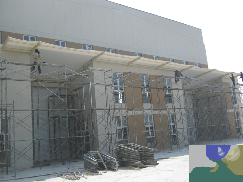 膜結(jié)構(gòu)雨棚是帆布雨棚的進(jìn)化新一代遮陽產(chǎn)品:下圖組是松江區(qū)膜結(jié)構(gòu)雨棚的施工安裝,是以墻面為基礎(chǔ)直接鋼骨挑出2米,門口部分挑出6米連體效果非常好,墻面基礎(chǔ)拉力測(cè)試全部通過!是膜結(jié)構(gòu)雨棚的經(jīng)典案例之一。