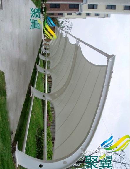膜結(jié)構(gòu)車棚使用壽命長(zhǎng)久耐用(可采用永久性建筑張拉膜)鋼結(jié)構(gòu)骨架可根據(jù)設(shè)計(jì)與環(huán)境的因素達(dá)到最佳方案,是一般的汽車車棚無法實(shí)現(xiàn)的。車棚膜布顏色有多種,停車篷的膜面料壽命在8年-25年不等。鋼材選用Q235,拋光防銹處理,表面噴漆:鍍鋅鋼索外包白色PE。壓制瞄具:鍍鋅螺栓,膜布采用歐洲進(jìn)口白色PVDF 詳細(xì)咨詢我司:400-021-3310(24小時(shí)全國(guó)免費(fèi)熱線),電話:021-61726028/60489599/60485955 傳真:021-37695806