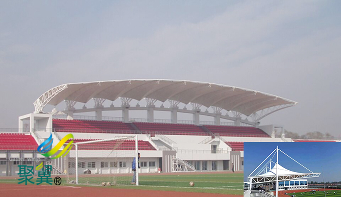 膜結(jié)構(gòu)看臺可以支撐2倍以上的無柱支撐建筑,大面積遮陽擋風(fēng)遮雨又漂亮美觀,所以受到體育場的信賴。