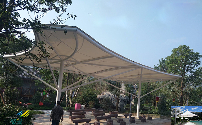 膜結(jié)構(gòu)傘,就是以材料做為頂棚材料的遮陽設(shè)備,由于其形狀類似傘狀,因此得名。膜結(jié)構(gòu)傘擁有價格實惠,造型別致,質(zhì)量優(yōu)秀,保質(zhì)期長等特點,所以深受廣大客戶的喜愛。也正是因為這些特點,使得膜結(jié)構(gòu)傘經(jīng)常應(yīng)用到建筑入口、步行街、小區(qū)花園、旅游景點等環(huán)境。