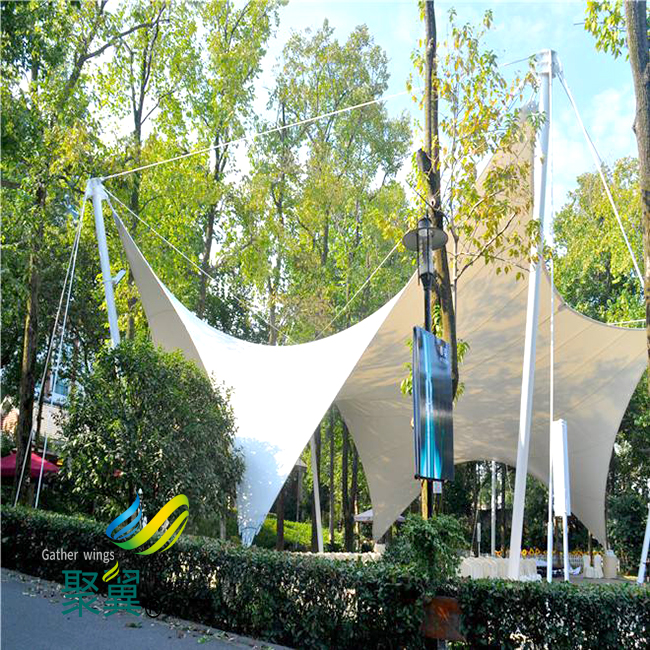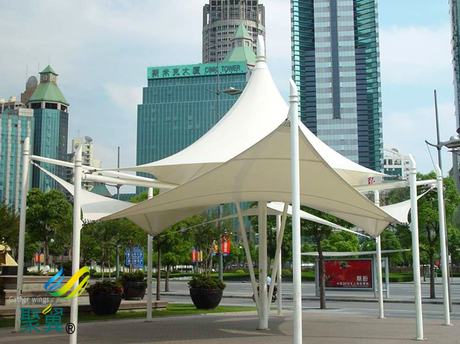 景觀膜結(jié)構(gòu)是用高強(qiáng)度柔性薄膜材料與支撐體系相結(jié)合形成具有一定剛度的穩(wěn)定曲面,能承受一定外荷載的空間結(jié)構(gòu)形式,給人一種古老而又現(xiàn)代的美感! 在膜結(jié)構(gòu)的發(fā)展中,因?yàn)槠渲饕獞?yīng)用于機(jī)場(chǎng)、體育館、停車(chē)場(chǎng)、景觀等場(chǎng)所,根據(jù)制作材料的不同,在這些地方使用膜結(jié)構(gòu)的時(shí)候,根據(jù)不同的地點(diǎn)膜結(jié)構(gòu)都有屬于自己的優(yōu)勢(shì),為了區(qū)分方便,大家才直接把應(yīng)用于景點(diǎn)的膜結(jié)構(gòu)材料叫做景觀膜結(jié)構(gòu)。 景觀膜結(jié)構(gòu)的特點(diǎn):1、景觀膜結(jié)構(gòu)以造型學(xué),色彩為依托,可結(jié)合自然條件及民族風(fēng)情,享受大自然般浪漫空間;2.對(duì)于同等大小的建筑,如果采用膜結(jié)構(gòu),景觀膜結(jié)構(gòu)成本只相當(dāng)于傳統(tǒng)建筑的二分之一或更少,特別是在建筑短期應(yīng)用的大跨度建筑時(shí),就更為經(jīng)濟(jì); 3、由于景觀膜結(jié)構(gòu)膜材料本身具有良好的透光率),建筑空間白天可以得到自然的漫射日光,可以節(jié)約大量用于照明的能源; 4、景觀膜結(jié)構(gòu)膜材料表面加涂的防護(hù)涂層,具有耐溫的特點(diǎn),而且本身不發(fā)粘,這樣落到景觀膜結(jié)構(gòu)膜材料表面的灰塵可以靠雨水的自然沖洗而達(dá)到自潔的效果。