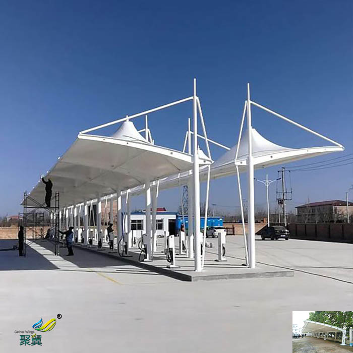 • 山東張拉膜結(jié)構(gòu)定制停充電樁車棚造價(jià)景觀