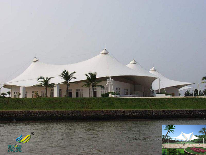 張拉膜結(jié)構(gòu)雨棚,是設(shè)在建筑物出入口或頂部陽臺上方用來擋雨、擋風、防高空落物砸傷的一種張拉膜結(jié)構(gòu)建筑裝配。