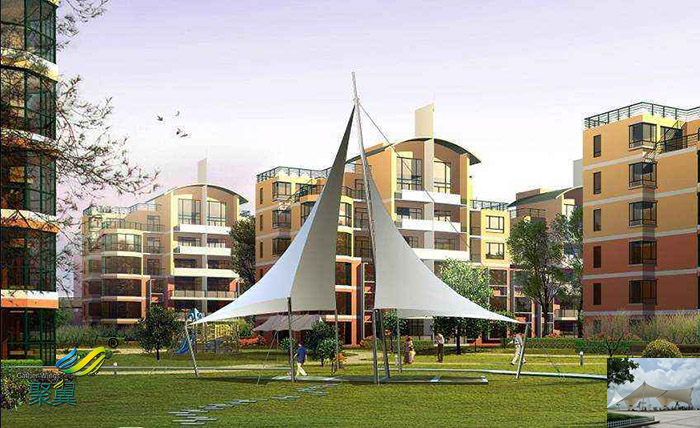 2. 景觀張拉膜結(jié)構(gòu)藝術(shù)性:除了通常雨蓬不行比較的實用、經(jīng)用、遮風(fēng)擋雨的功能外,膜結(jié)構(gòu)雨蓬更是一座雕塑,一件藝術(shù)品,給人美的視覺享受。其柔美,其曲線,其剛?cè)岵?jì),其豐富外型,其潔白無瑕,讓人眼前一亮,回味悠長。