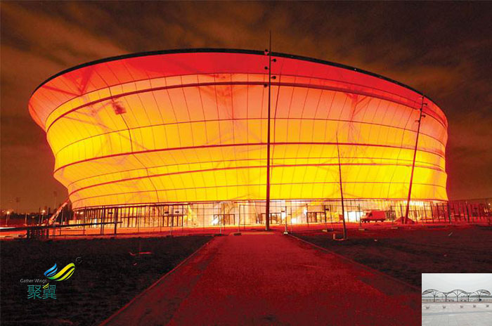 1、膜結(jié)構(gòu)建筑是21世紀最具代表性的一種全新的建筑形式,至今已成為大跨度空間建筑的主要形式之一。
