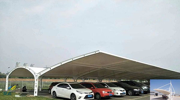 膜結構汽車充電樁停車棚耐溫性:在攝氏-40℃至+120℃溫度范圍內不會引起變形等品質劣化。